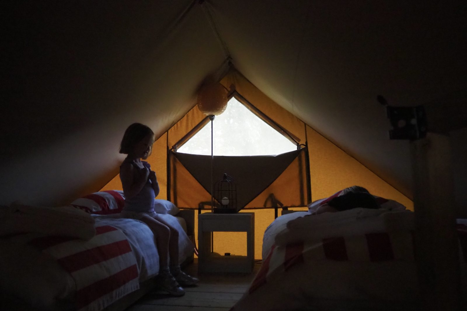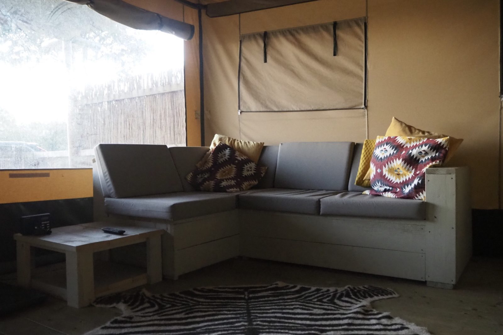 The glamping lodge has the added benefit of electricity and lighting and the living space has a TV…perfect for an evening with a glass of wine and catching up on Strictly!
