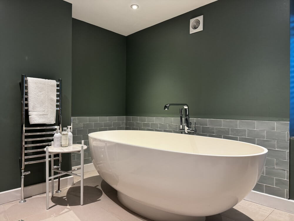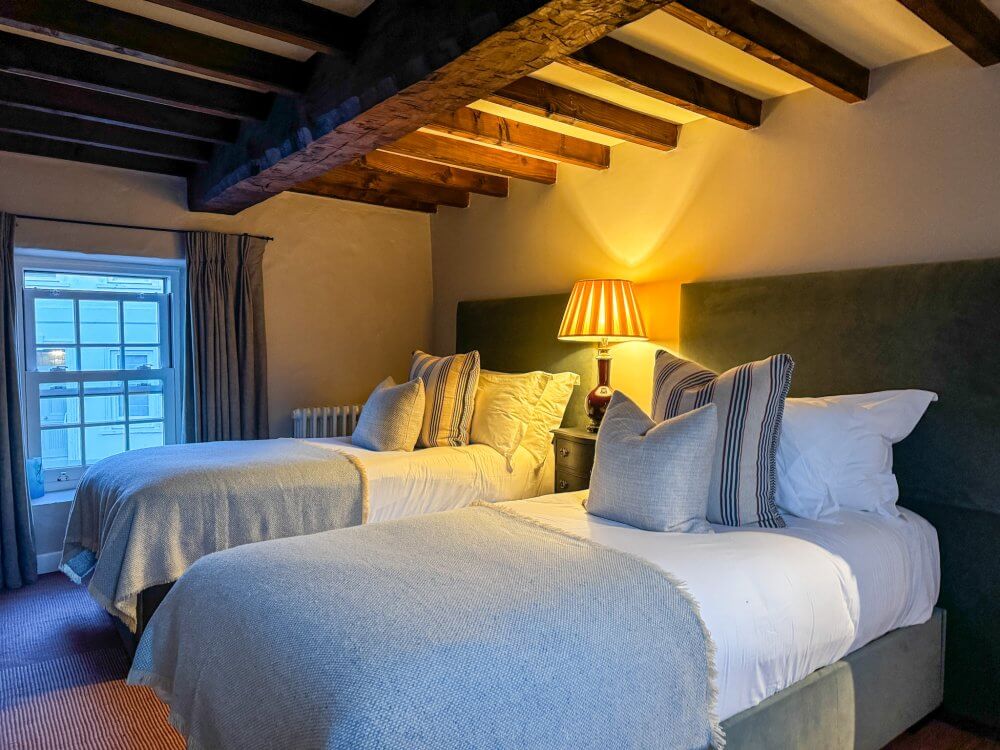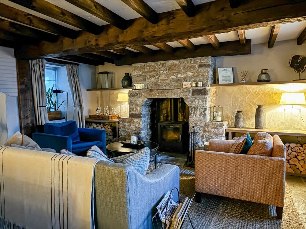 The Blonde Hedgehog is an 18th Century Cottage and beautifully and tastefully styled. There is a living area with a stunning fireplace and kitchen on the ground floor. Head up the stairs to two double bedrooms and a gorgeous bathroom with a freestanding bath. The top floor has a double bedroom, ensuite and rooftop terrace. The beds were so comfortable and we all had the best sleep during our stay here, so much space after living in a campervan!