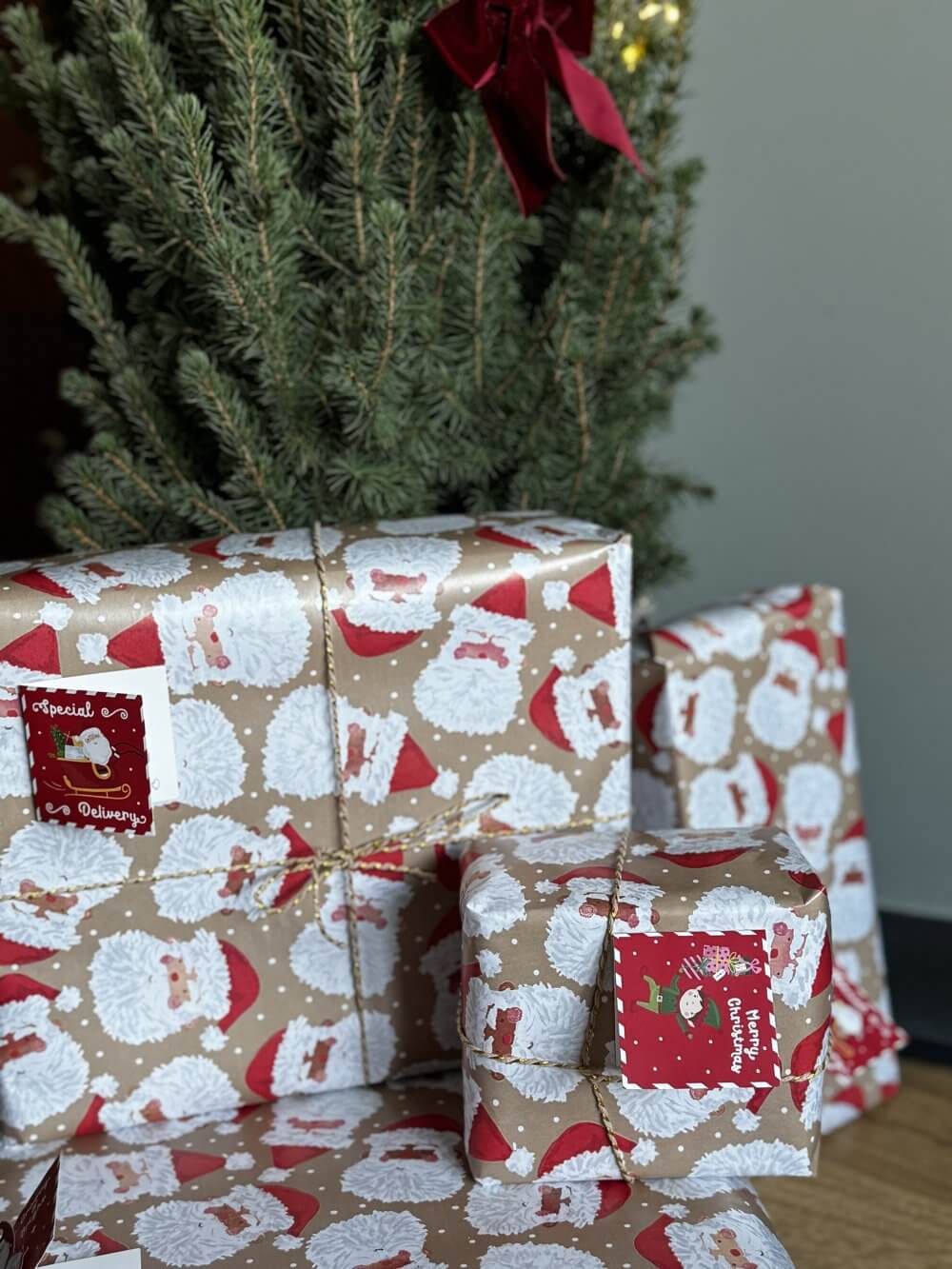 Who doesn’t love a luxury wrapping paper, with a fancy bow, or a sprig of Hollie tucked into a jute bow?